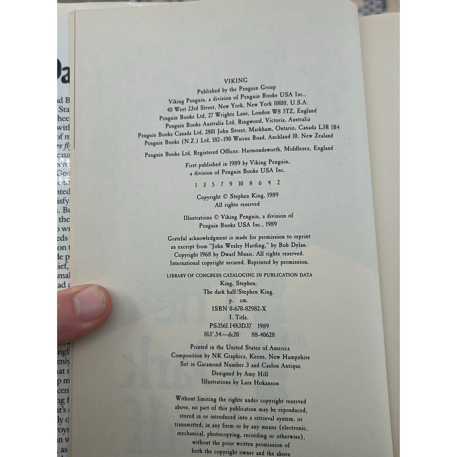 The Dark Half - Stephen King - Hardcover - Viking - 1st Edition, 1st Print
