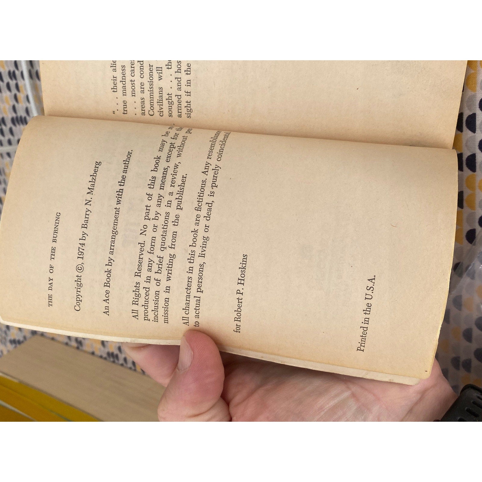 The Day Of The Burning - Barry Malzberg - Vintage Paperback Book - Ace Edition