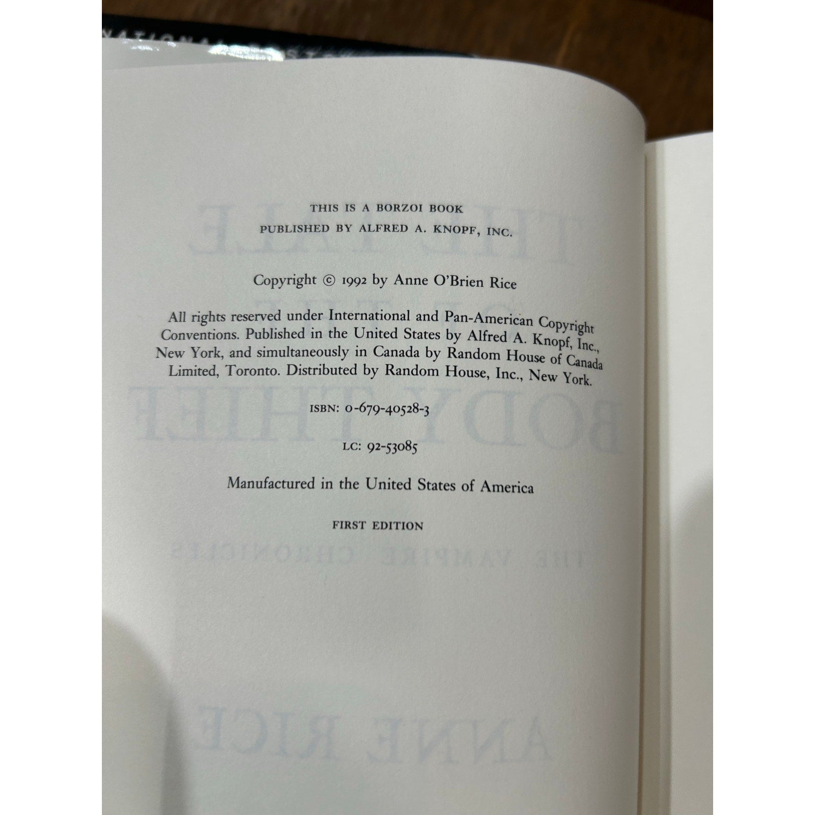 The Tale Of The Body Thief - Anne Rice - Knopf - Hardcover - 1st Edition